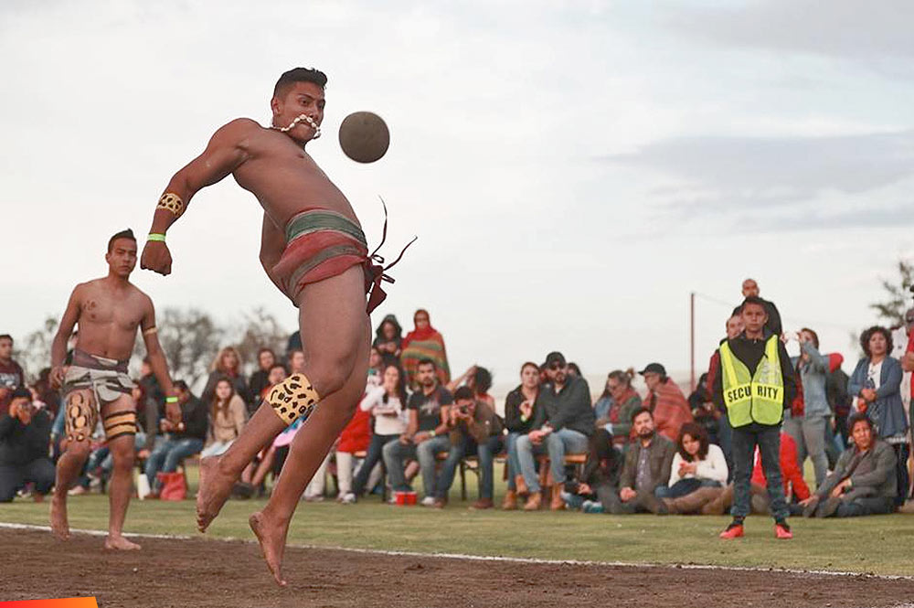 The Sport is played with the hips, with objective to knock a rubber ball weighing 4.4 pounds past the opposing team. It is known as Ulama in Mexico and Pok ta Pok in Belize.